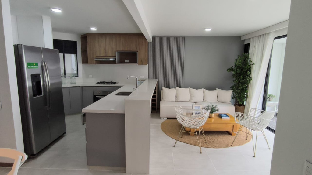 Descubre este exclusivo apartamento en una zona residencial privilegiada. Con 2 habitaciones, 3 baños y 90 metros cuadrados, ofrece un ambiente elegante y funcional. Disfruta de un balcón con vista interior, cocina tipo Americano con isla, estudio, sala-comedor, vestier y zona de ropas. Además, cuenta con comodidades como vigilancia privada 24*7, piscina, gimnasio, senderos ecológicos y salón de juegos. En conjunto cerrado con portería, ascensor y planta eléctrica. Ideal para quienes buscan confort y seguridad. ¡Haz de este lugar tu nuevo hogar! INCLUYE ADMON, PARA MAS INFORMACION ALEJANDRA MORENO