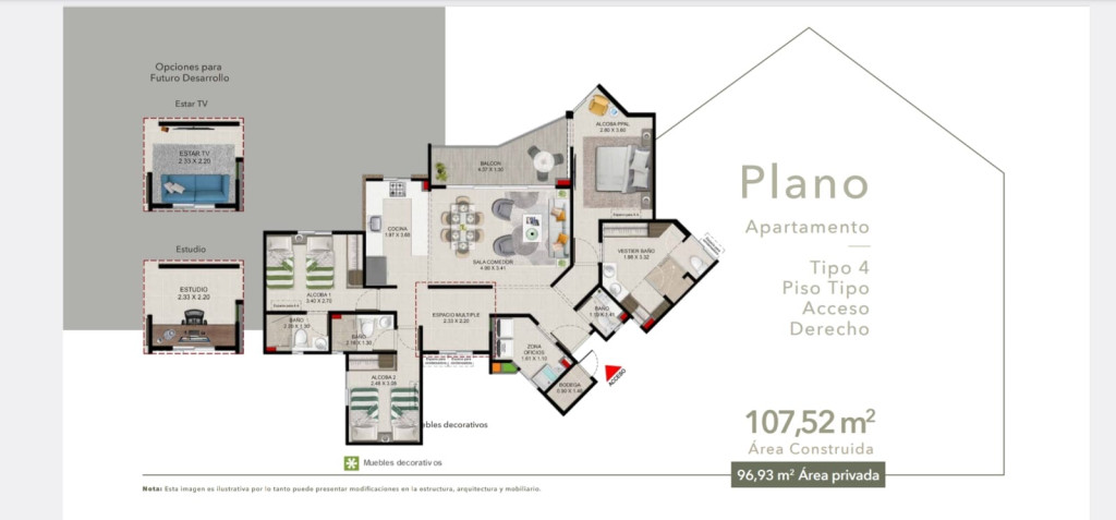 Descubre este exclusivo apartamento de 3 habitaciones y 4 baños en un conjunto cerrado con acceso para discapacitados y vigilancia privada las 24 horas. Con una cocina integral, balcón con vista exterior, estudio, cuarto útil y zona de ropas. Disfruta de las comodidades de un gimnasio, piscina, sauna, salón comunal y zonas verdes. Con garaje cubierto, ascensor y bahía exterior de parqueo. Vive la experiencia de lujo y seguridad en este espacio único. ¡Bienvenido a tu nuevo hogar! Katalina cardona.